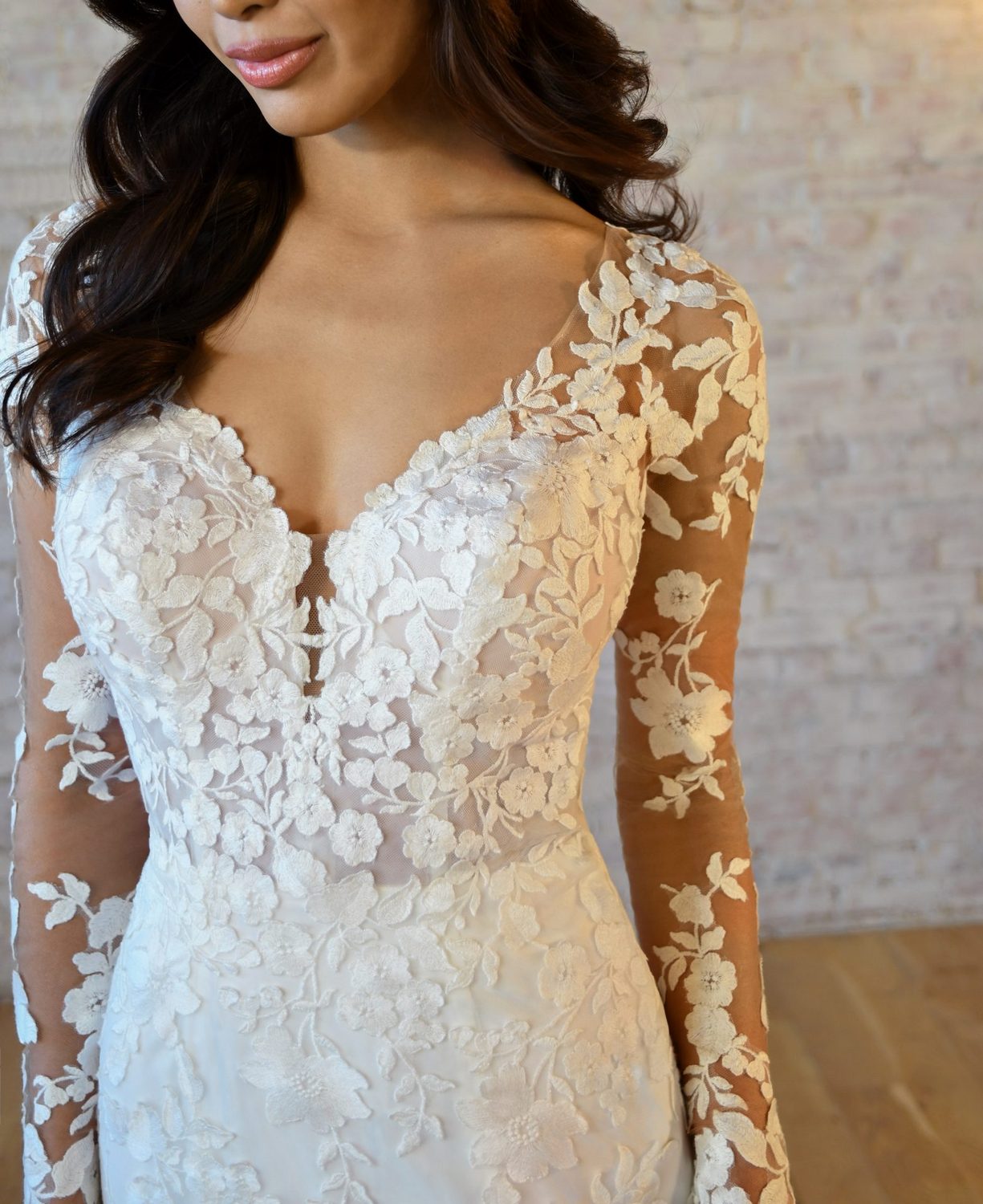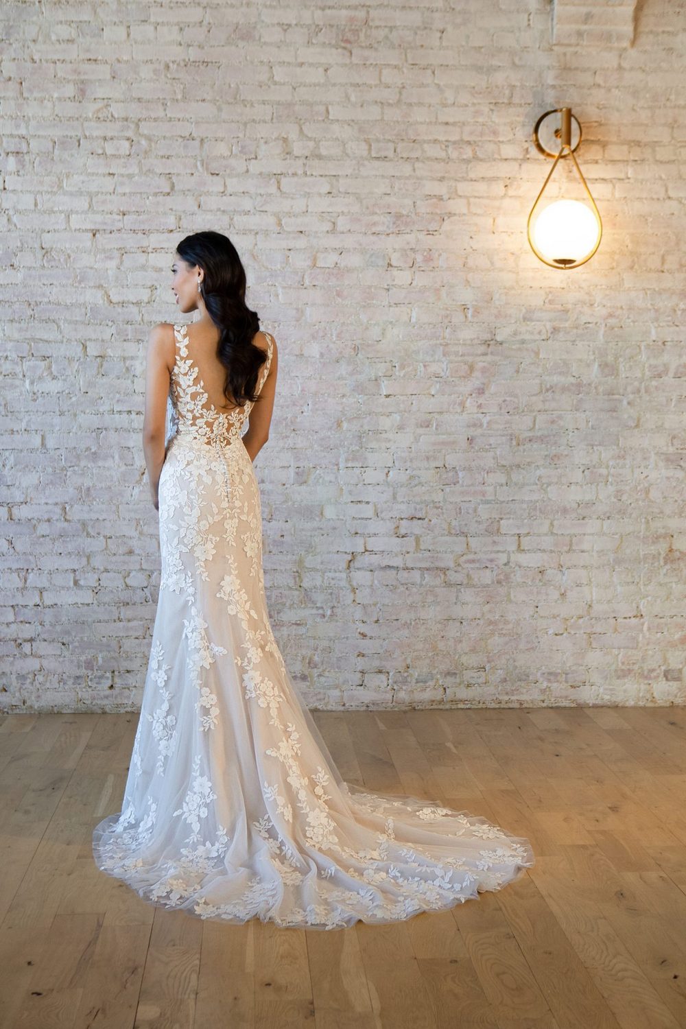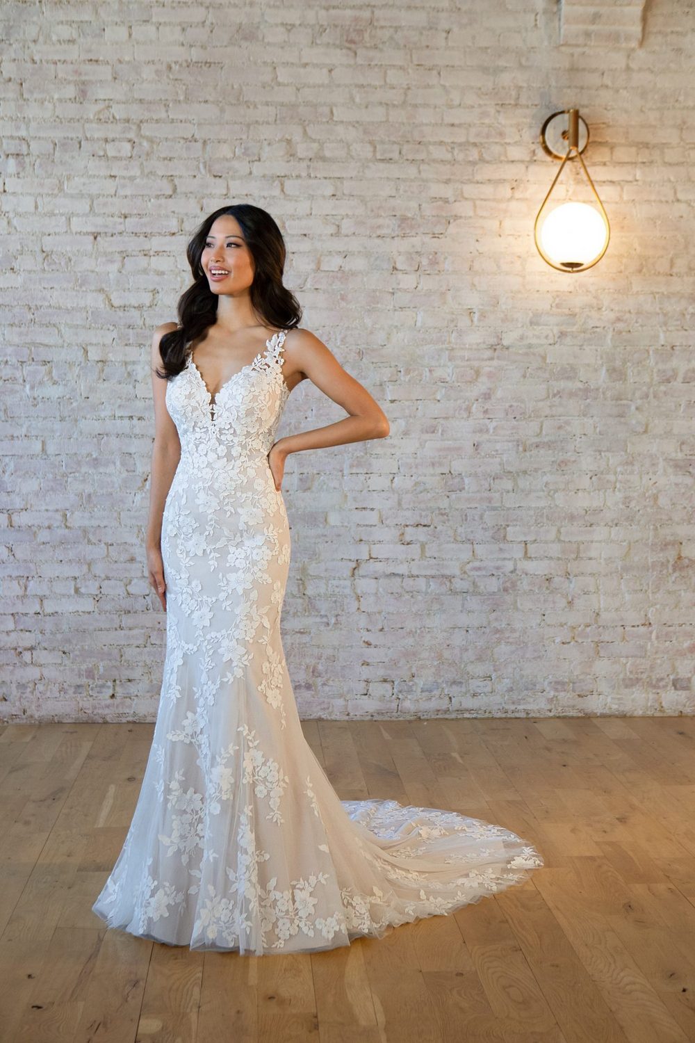 Betoverend en aantrekkelijk, deze trouwjurk van Stella York is de perfecte keuze voor de moderne bruid. Met een V-halslijn, doorschijnende tule op het lijfje en prachtige lange mouwen is deze jurk ultra-vrouwelijk en zal ze je rondingen op de juiste plaatsen omarmen. Het fit & flare silhouet is flatterend en chic, terwijl de zwierige rok gracieus met je meebeweegt terwijl je de hele nacht danst. Aan de achterkant leiden delicate met stof beklede knopen tot een prachtige sleep die precies de juiste hoeveelheid drama toevoegt. Of je nu op zoek bent naar iets tijdloos en elegants of charmants en betoverends, Stella York heeft de perfecte jurk voor jou.