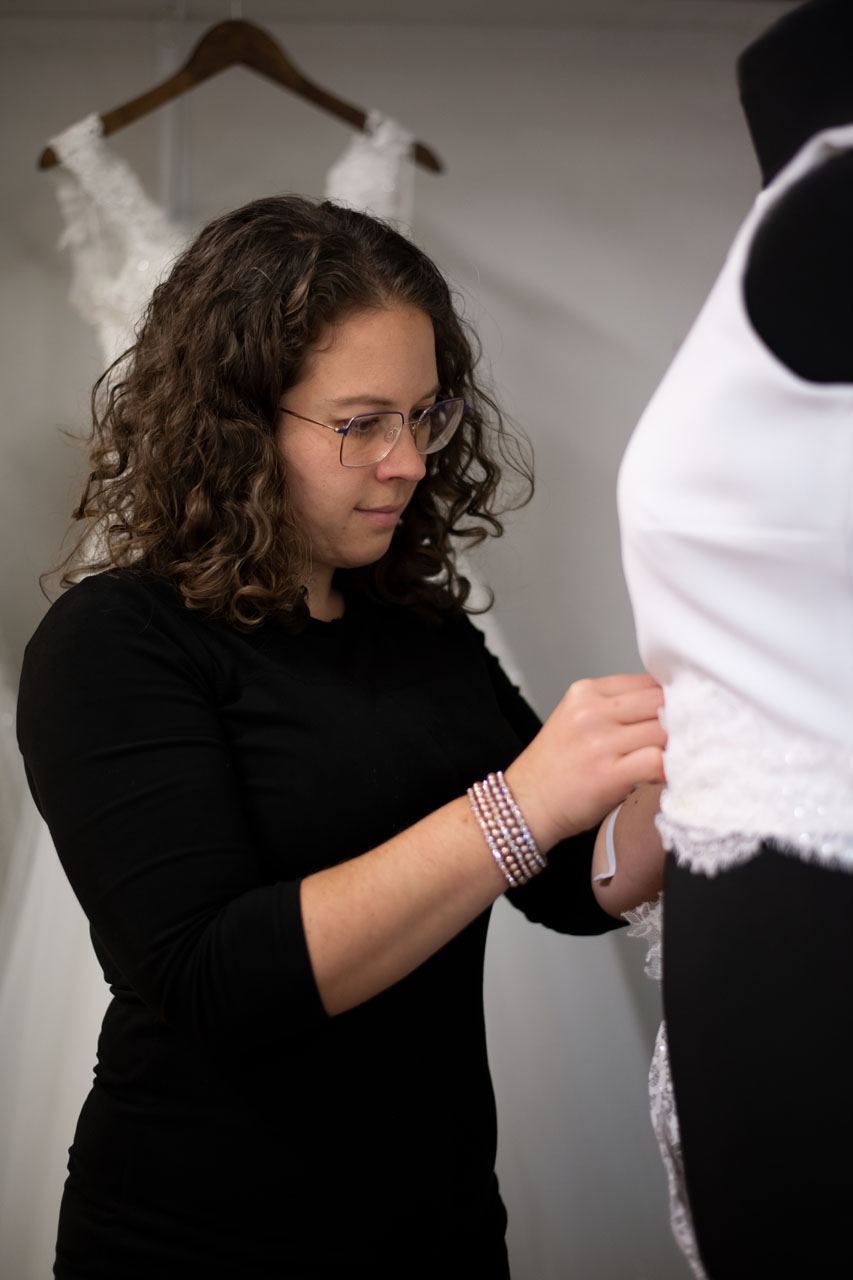 Ze kan de pasvorm van jouw trouwjurk tot in perfectie vermaken, ook als je geen gemakkelijk figuur hebt. Het is dan ook haar passie om een trouwjurk zo op maat te maken dat de bruid zich zelfverzekerd en mooi voelt.