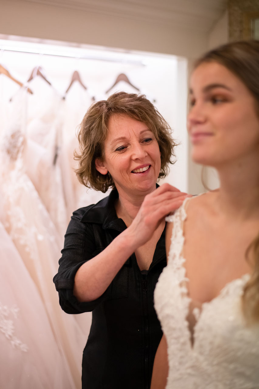 Als je je trouwjurk hebt uitgezocht en je weer komt passen om je trouwjurk op maat te laten maken, heb je een grote kans dat je Marion ontmoet. Marion is werkzaam bij DIANA Bruidshuis als coupeuse, met haar 30 jaar ervaring in haar vakgebied is Marion oprecht een expert te noemen.