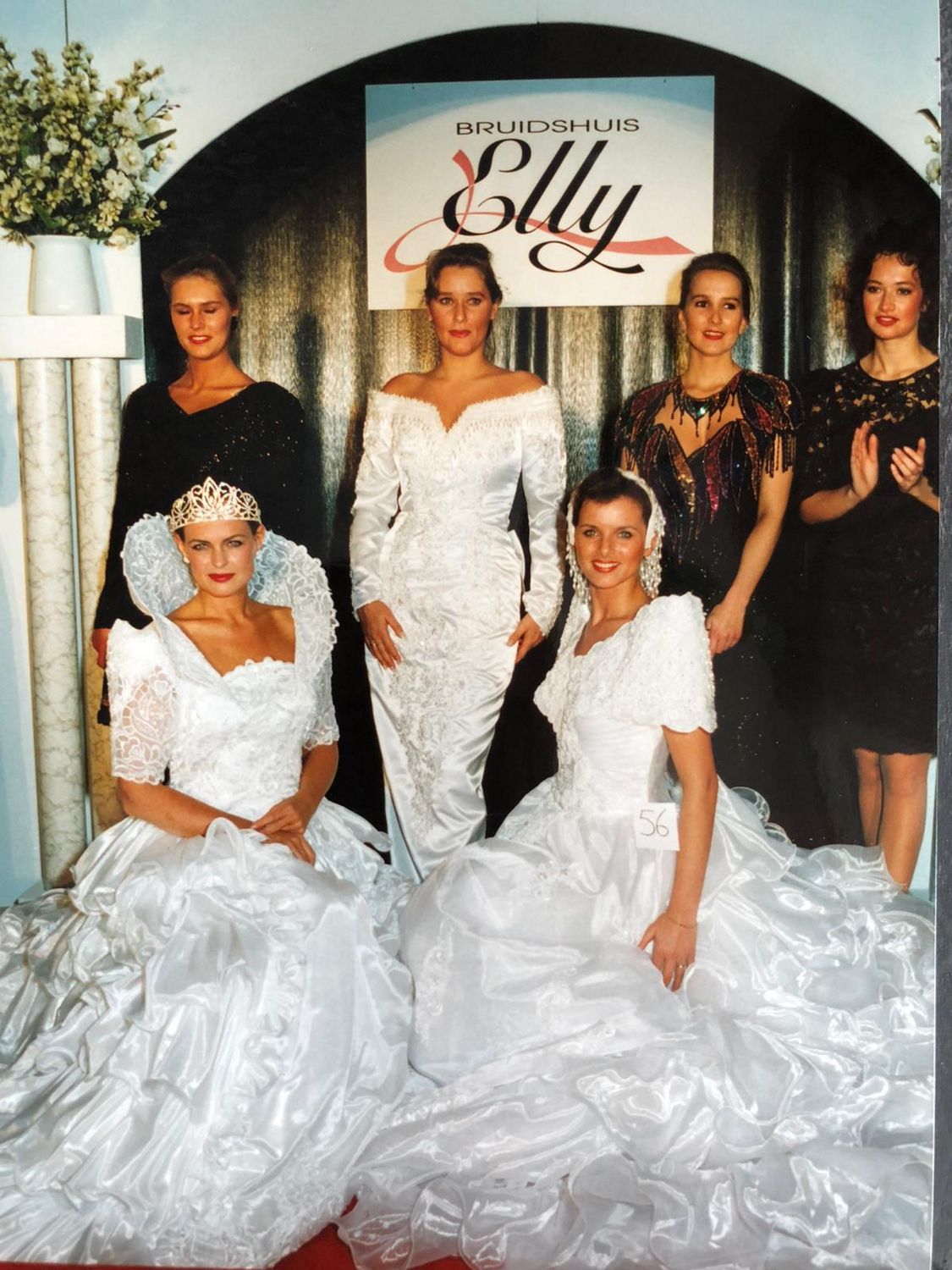 Geweldig waren ook de eerste bruidsmode shows met "mannequins", gewoon de zus en dochter van..", zelf mocht ik ook mee lopen. Later heeft dit zich ontwikkeld tot professionele shows met artiesten en professionele modellen. Het is super leuk om te zien dat al vele jaren de bruiden van toen, nu weer met hun dochters bij ons in de winkel komen. Vaak wordt er een traantje weggepinkt of mooie herinneringen opgehaald. Rond 1980 nam mijn zus Elly de zaak over en de naam werd gewijzigd in Bruidshuis Elly. Na mijn opleiding startte ik in 1990 met hulp van mijn zus Elly een nieuwe winkel in het Brabantse Boxmeer, Bruidshuis Diana. Veel bruiden vinden ons nog via mond-tot-mondreclame, maar tegenwoordig kan je natuurlijk niet meer zonder een goede website en social media. Daarom hebben Bruidshuis Elly en Bruidshuis Diana een gezamenlijke website, zodat we onze bruiden nog beter van informatie kunnen voorzien. Ik ben er super trots op dat we tegenwoordig bij zowel Bruidshuis Elly als Diana de mooiste merken trouwjurken kunnen aanbieden in combinatie met deskundig advies en ervaring op het gebied van pasvorm en kwaliteit.