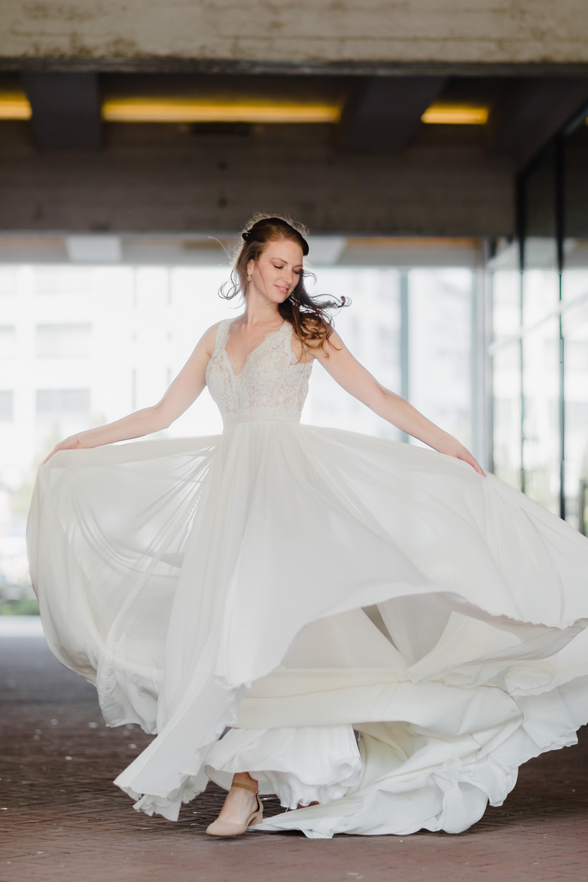 Iris: "Ik stapte de winkel binnen met een duidelijk beeld van wat ik dacht dat ik wilde. Het bleek echter niet zo eenvoudig. Daisy heeft me tijdens deze achtbaan van emoties geweldig geholpen bij het vinden van mijn droomjurk!