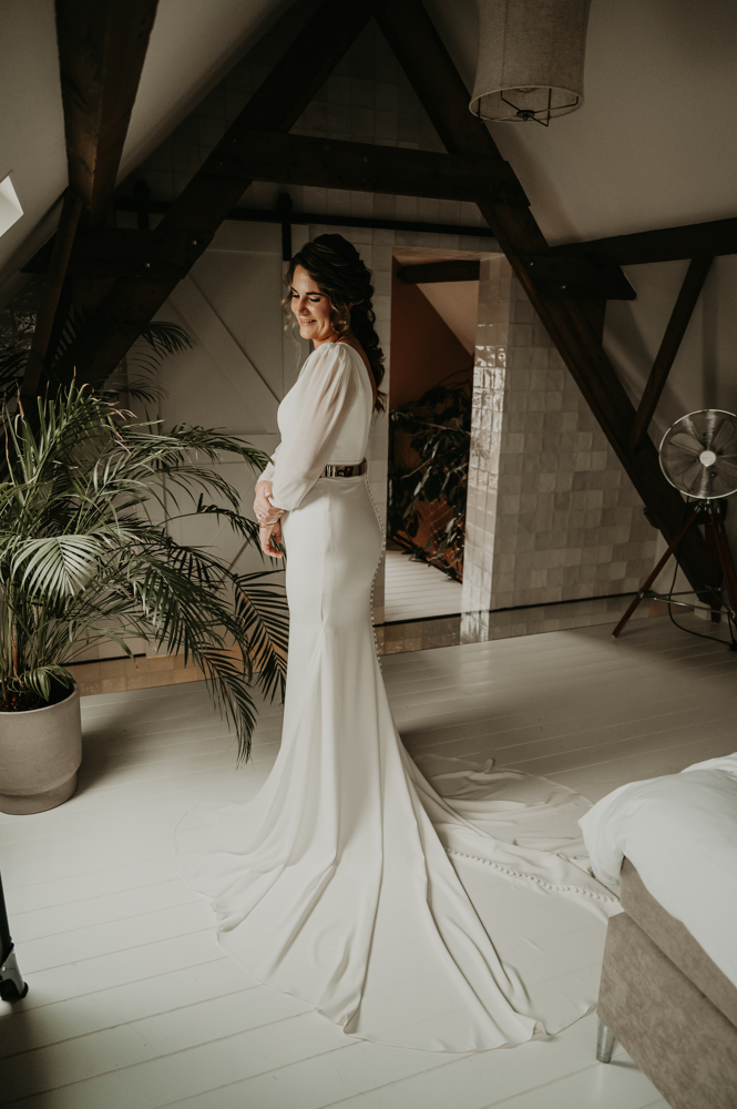 Erg blij met de keuze van mijn trouwjurk. De jurk heeft de hele dag heerlijk gezeten en super veel reacties gekregen over de jurk maar ook over de details zoals het gouden riempje! Bedankt voor de goede hulp in de winkel.