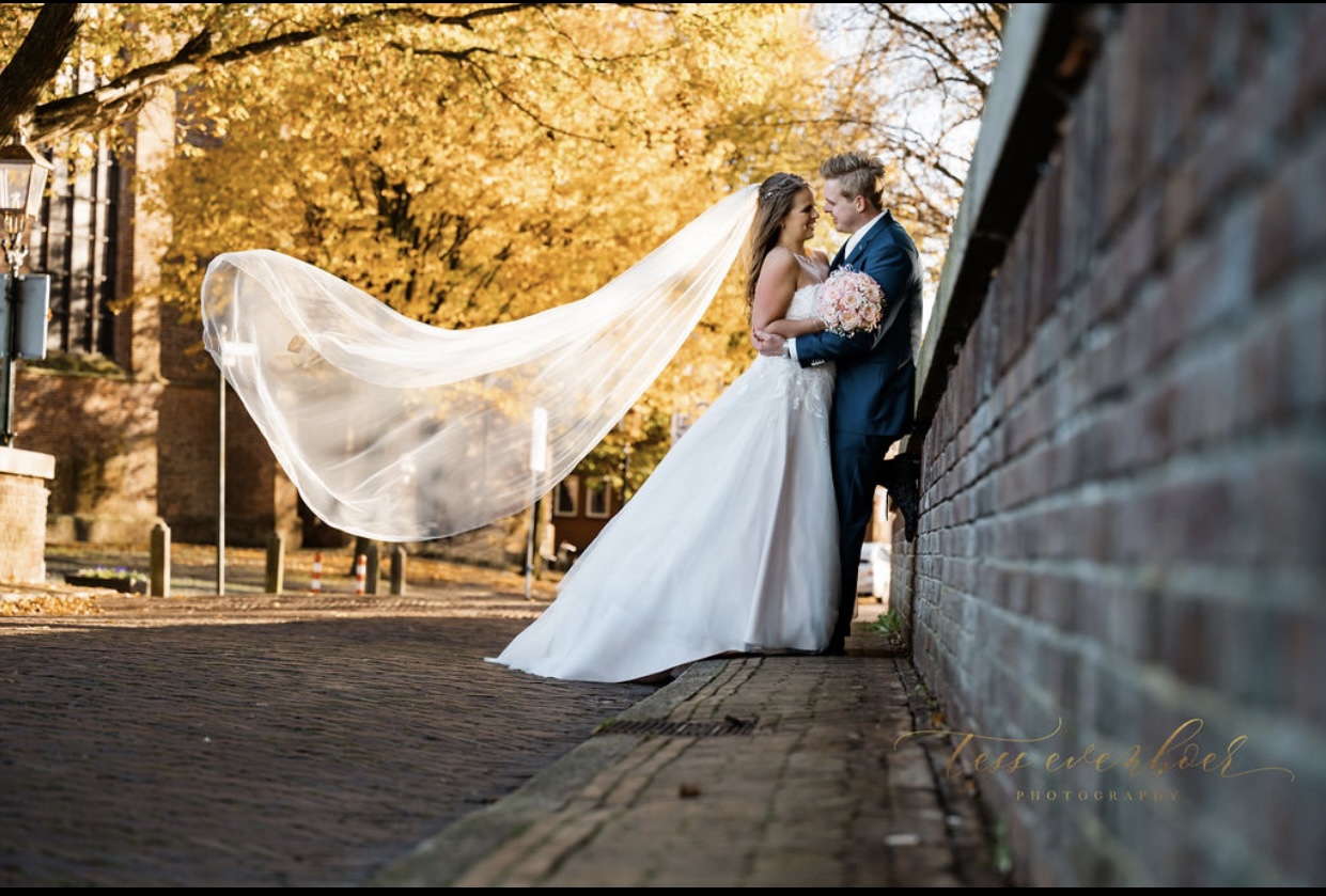 3 jaar geleden begon mijn zoektocht naar de perfecte jurk. Toen ik bij bruidshuis Elly binnen kwam werd ik heel leuk ontvangen. Wat voor jurk ik wilde wist ik niet maar daar hebben ze mij heel goed bij geholpen. Heb alle soorten jurken aangepast maar is uiteindelijk een prinsessenjurk geworden. Door Corona en de zwangerschap van mijn dochter heb ik de jurk 2 jaar moeten laten hangen maar ook dat was geen probleem. 19-11-2022 was dan eindelijk onze grote dag. Wat was de jurk mooi. Ik raad het zeker aan om bij bruidshuis Elly je jurk te komen uitzoeken als je goed geholpen wilt worden.