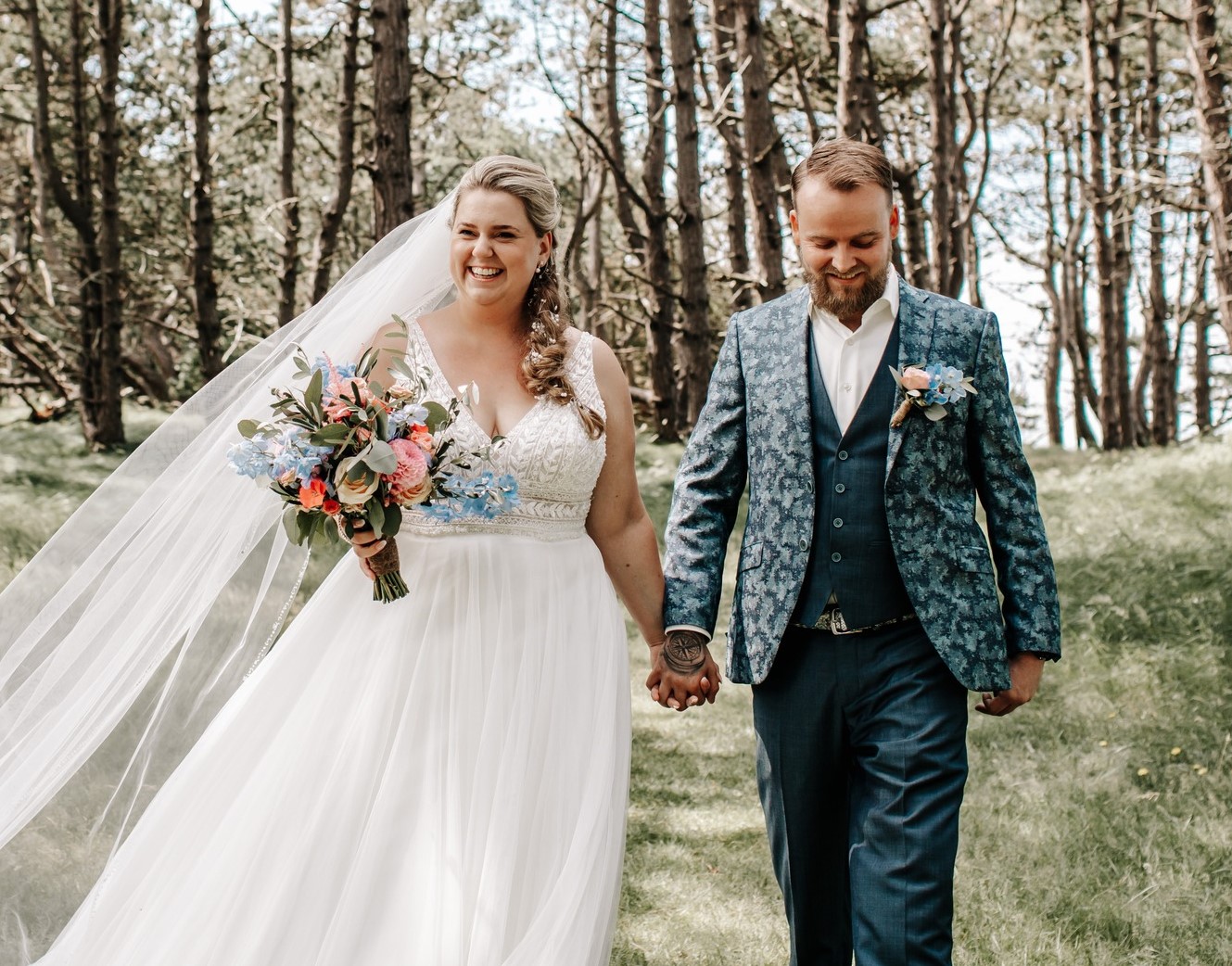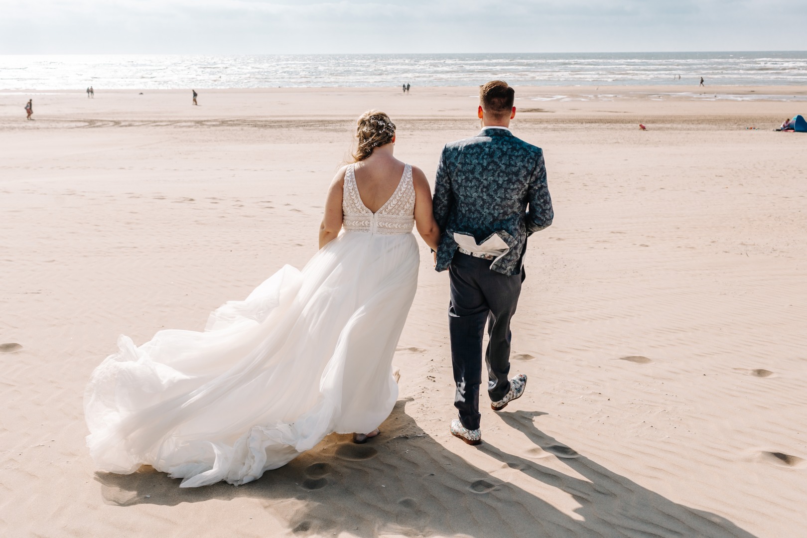 Door corona waren er veel onzekerheden maar de jurk was daar geen een van. Het was een stralende dag met veel zon en wind. Hierdoor kwam de jurk mooi tot zijn recht.