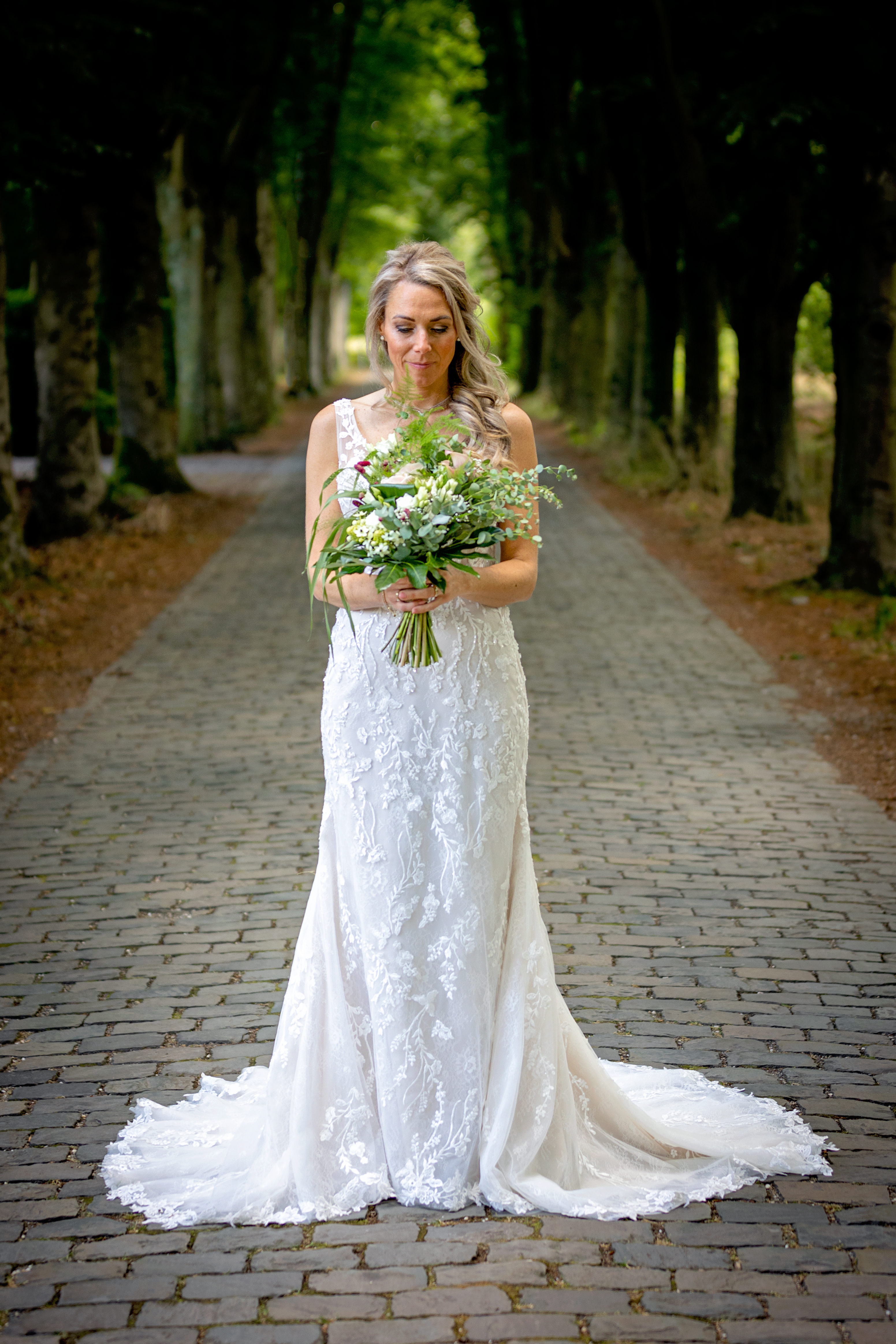 Wat me direct op viel, is dat zij al heel wat ervaring heeft, metbruidjes aan te kleden.