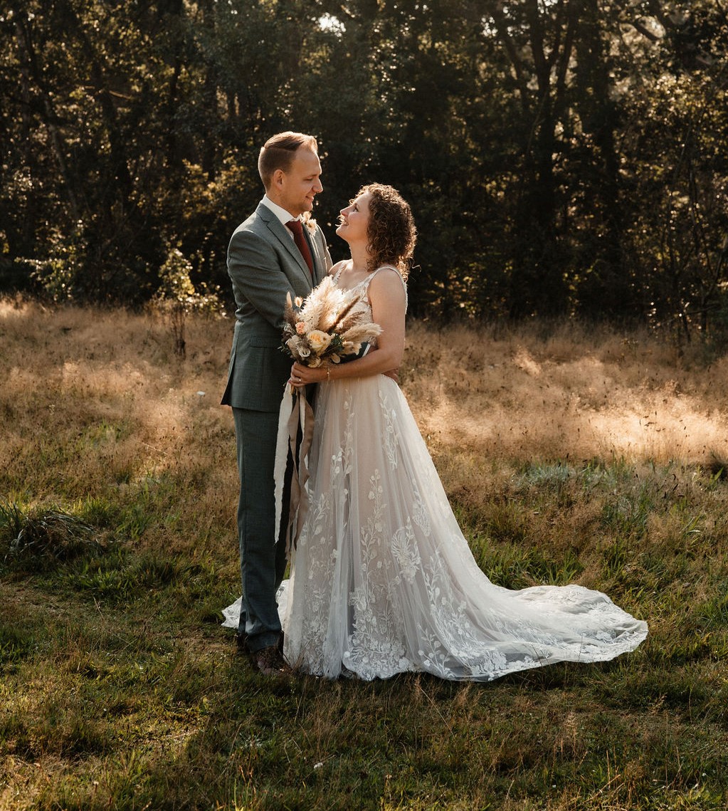 Wat hebben wij genoten van een prachtige dag, de jurk was perfect. Ik vond het lastig om een keuze te maken, ik ben niet iemand die vaak jurken draagt maar jullie dachten met mij mee en we hebben de jurk helemaal naar mijn wens kunnen aanpassen. Na de tweede pasafspraak twijfelde we nog over de lengte, dat was geen probleem, ook toen nog werd de jurk netjes afgespeld en korter gemaakt. Hierna was de jurk perfect! Ik voelde me hierdoor echt heel fijn in deze jurk en heb op onze bruiloft alleen maar hoeven te genieten. Onwijs bedankt!