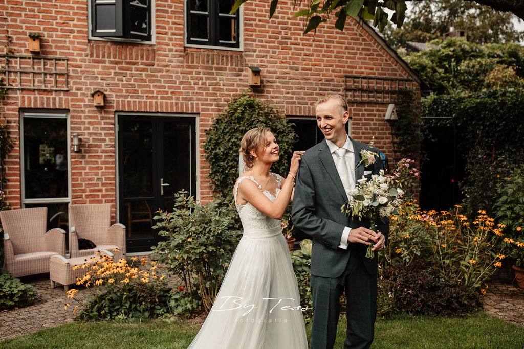 Bedankt voor jullie hulp met mijn jurk. Zoals beloofd stuur ik nog een foto van hoe ik (en mijn man) eruit zagen afgelopen vrijdag. Wij genieten na in Italië op onze huwelijksreis.
