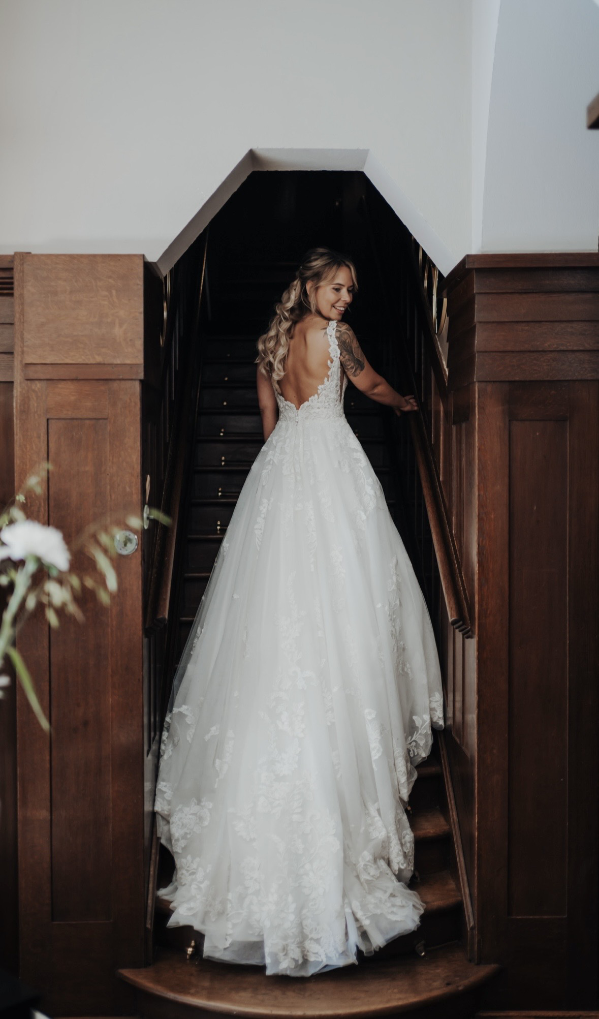 Ik was zo blij met mijn trouwjurk! De eerste jurk die ik aantrok, was het meteen – ik voelde het gewoon. Daarna heb ik nog drie andere jurken gepast, maar geen enkele gaf me datzelfde gevoel. En wat ben ik blij dat ik naar mijn gevoel heb geluisterd, want op de grote dag kreeg ik zóveel leuke reacties! Iedereen vond dat de jurk mij prachtig stond. 💕