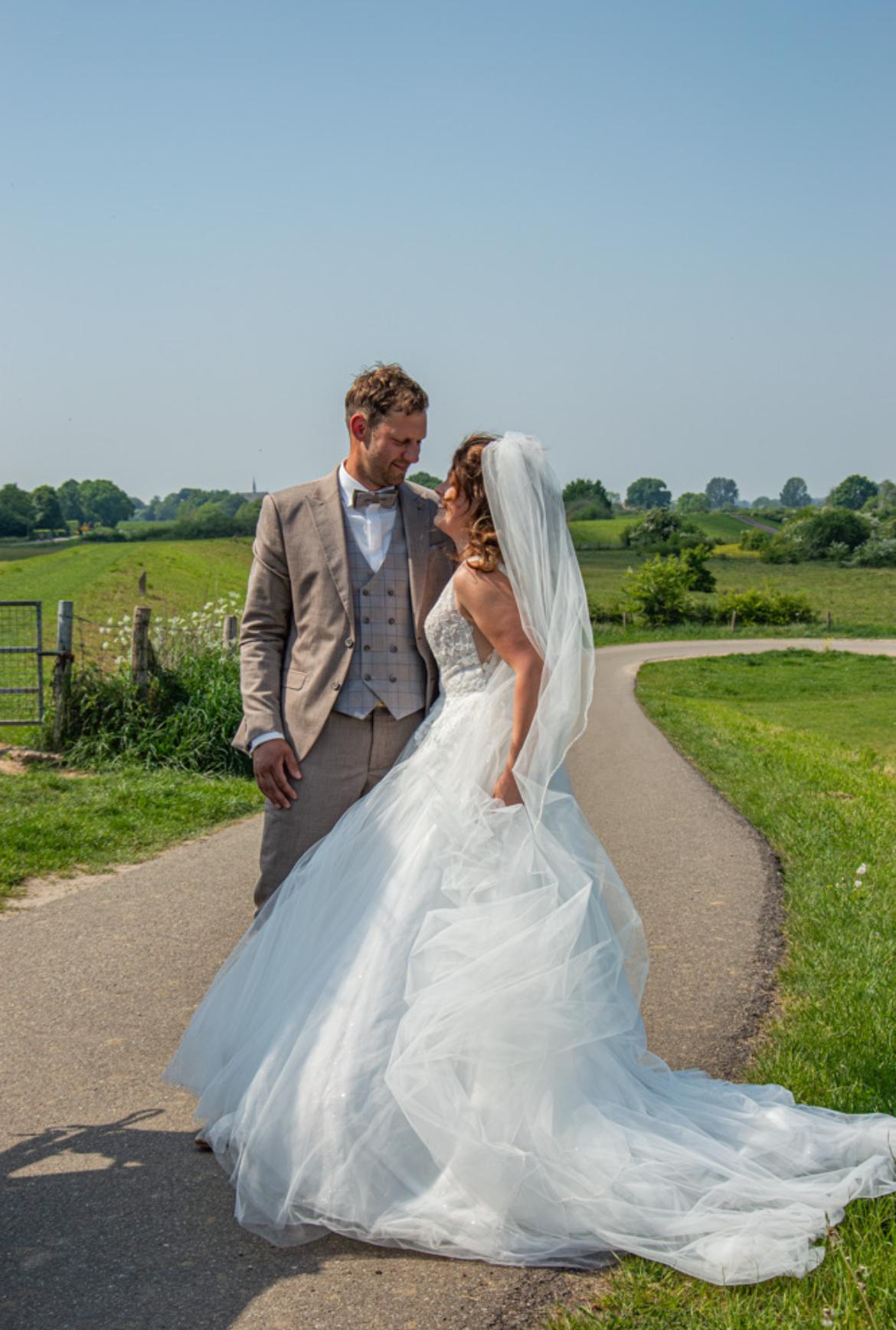 In Februari 2025 zijn wij getrouwd, hiervoor kwam ik bij Bruidshuis Diana om mijn droomjurk uit te zoeken. Super geholpen door Jessica die mij verschillende opties gaf. Ik werd direct verliefd op de 2e jurk en wilde eigenlijk al direct “ja” zeggen, maar op advies van mijn moeder toch nog wat andere jurken gepast. Het is uiteindelijk toch nummer 2 geworden! Ook de pasafspraken verliepen prima, waarbij je ook direct goede tips krijgt zoals draaien en lopen met zo’n jurk, en het opspelden van de sleep voor de avond. Ik heb me super fijn en mooi gevoeld in mijn droomjurk, we hoopte op mooi weer en dat hebben we ook zeker gekregen waardoor ook de glitters super mooi te zien waren.