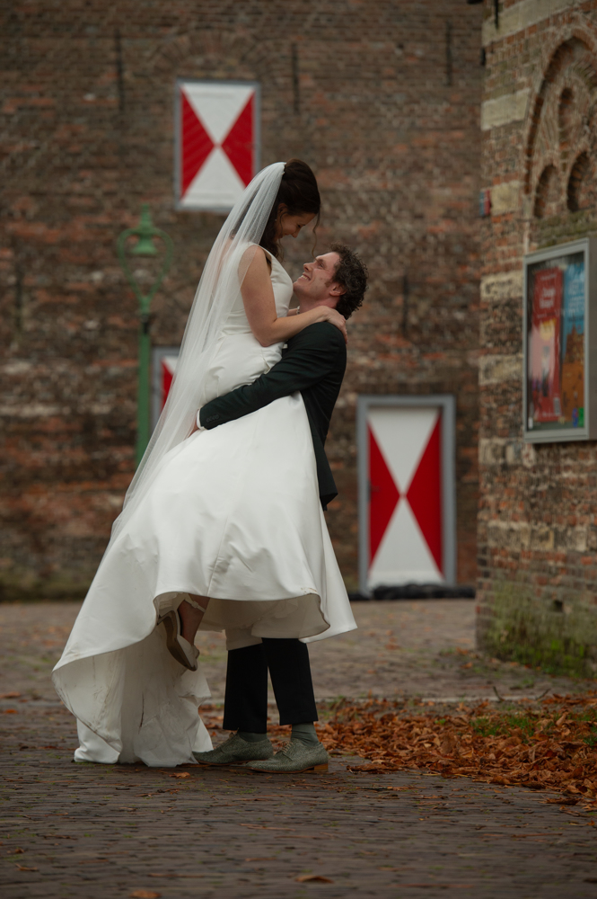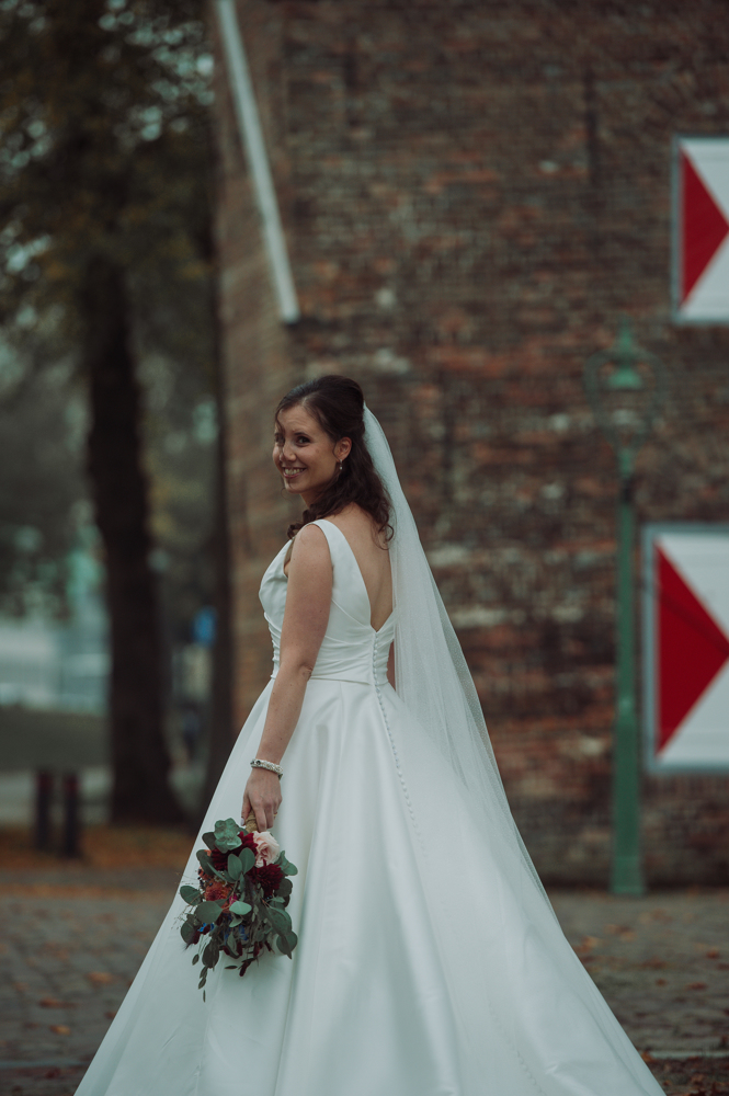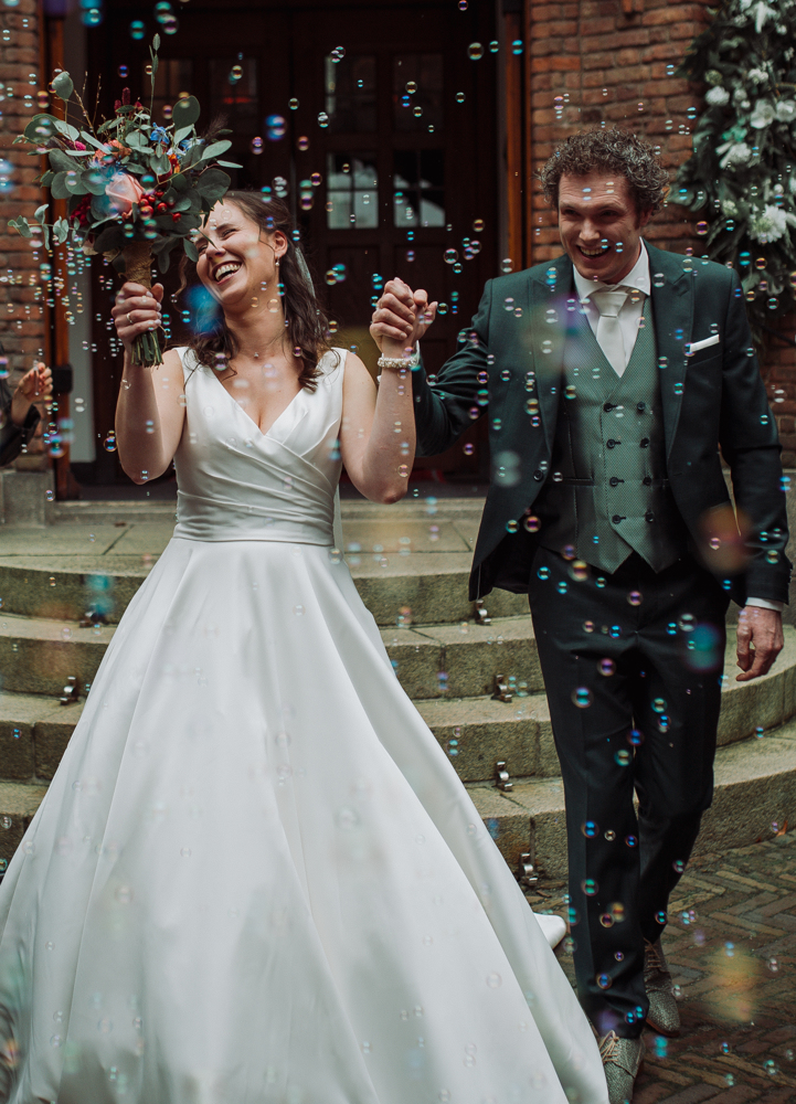 Het was geen lichte jurk maar daar voelde je niets van en ik heb zelfs staan hakken op ons feest.😉