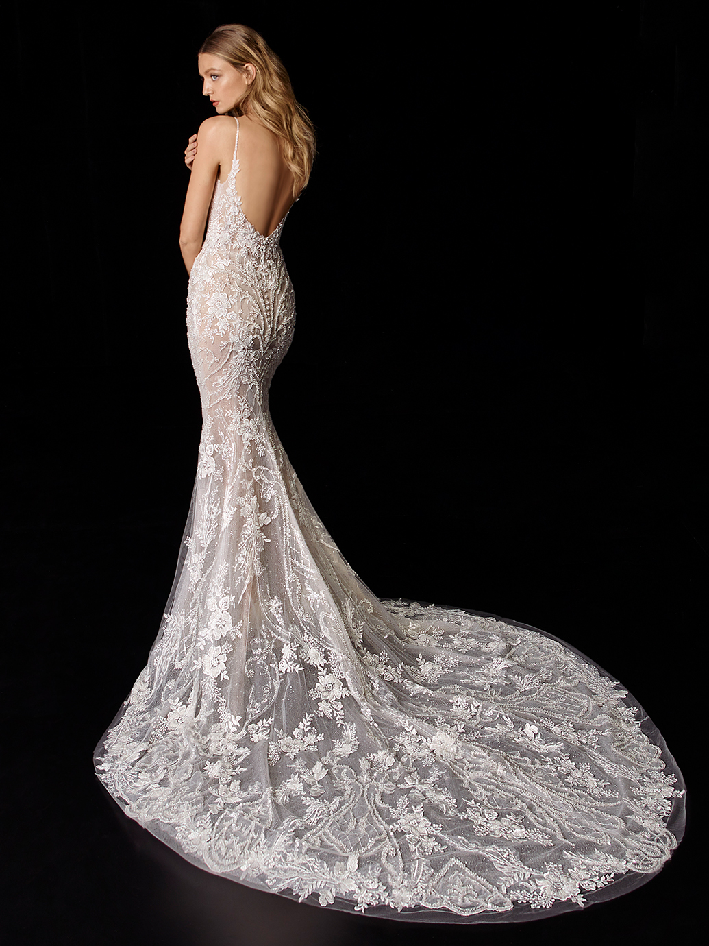 De Phoebe is een prachtige all-over kanten trouwjurk van het merk Enzoani. Het brocante kant is rijk gevuld met glinsterende kralen. Deze fit & flare trouwjurk laat je nog eens extra stralen door de sprankelende glitter tule. De smalle schouderbandjes lopen mooi over in een lage v-hals en zorgt voor een elegant decolleté. Ook op de rug lopen de smalle bandjes mooi door naar de bijzondere lage rug. Een elegante droomjurk voor een bruid die de hele dag wil stralen.