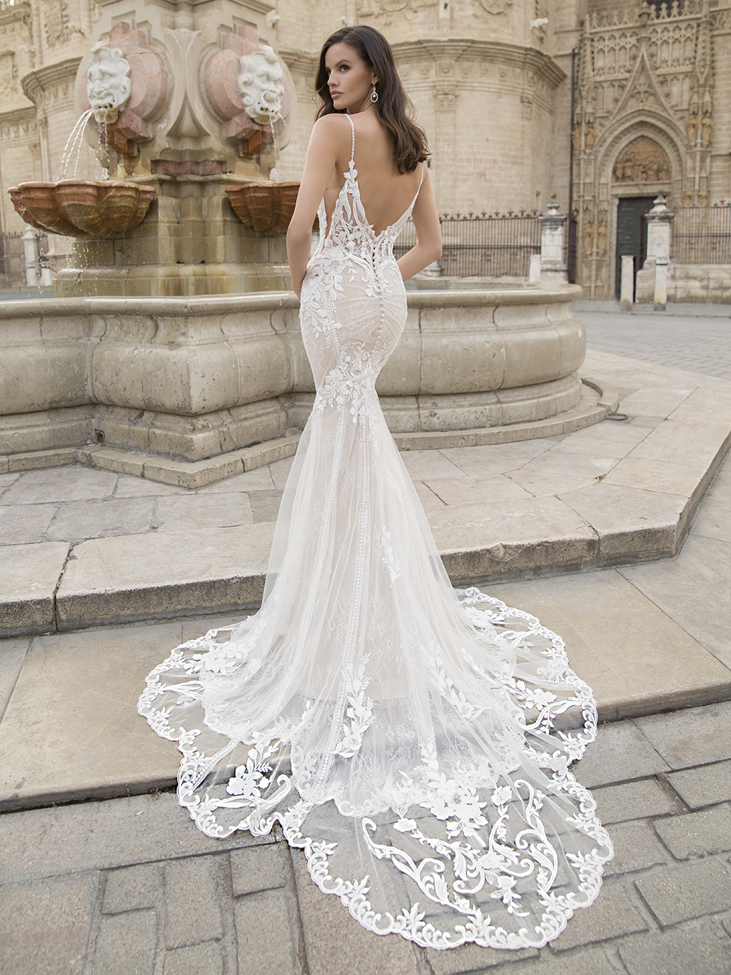 Deze romantische trouwjurk van Enzoani geeft je meer lengte door de sierlijke kanten applicaties en de fit & flare pasvorm. De diepe v-hals, zijuitsnijdingen en lage rug geven een sexy gevoel. Het doorschijnende lijfje is verleidelijk en word mooi ondersteund door de subtiele schouderbandjes. Een fantastische jurk voor een Italian wedding of bruiloft op het strand.