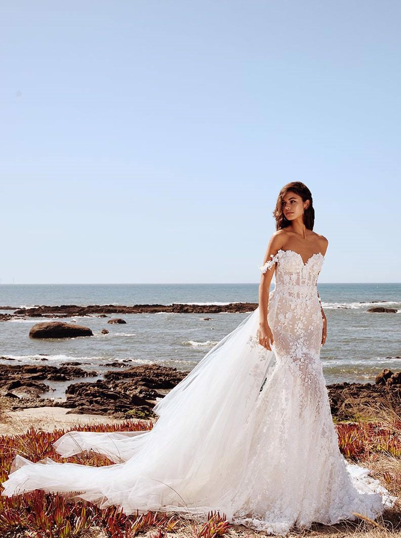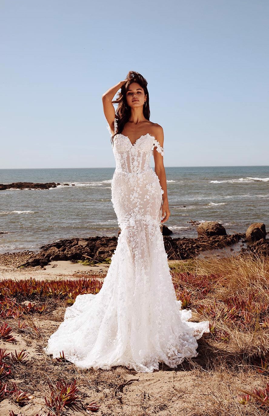 De Harmony trouwjurk van het exclusieve merk Galia Lahav is een sexy Fit & Flare trouwjurk, perfect voor de moderne bruid. De jurk heeft een verfijnde, sexy uitstraling doordat de hele trouwjurk is bedekt met prachtig bewerkt 3D-kant. De off-shoulder schouderbandjes zijn prachtig afgewerkt en de sweetheart halslijn accentueert het decolleté. De see-through details en de toegevoegde pailletjes op het kant voegen extra diepte en allure toe. De Harmony is te combineren met een bijpassende overskirt en zorgt voor een dramatisch effect. Harmony is de ultieme keuze voor de bruid die elegantie en sensualiteit wil combineren.