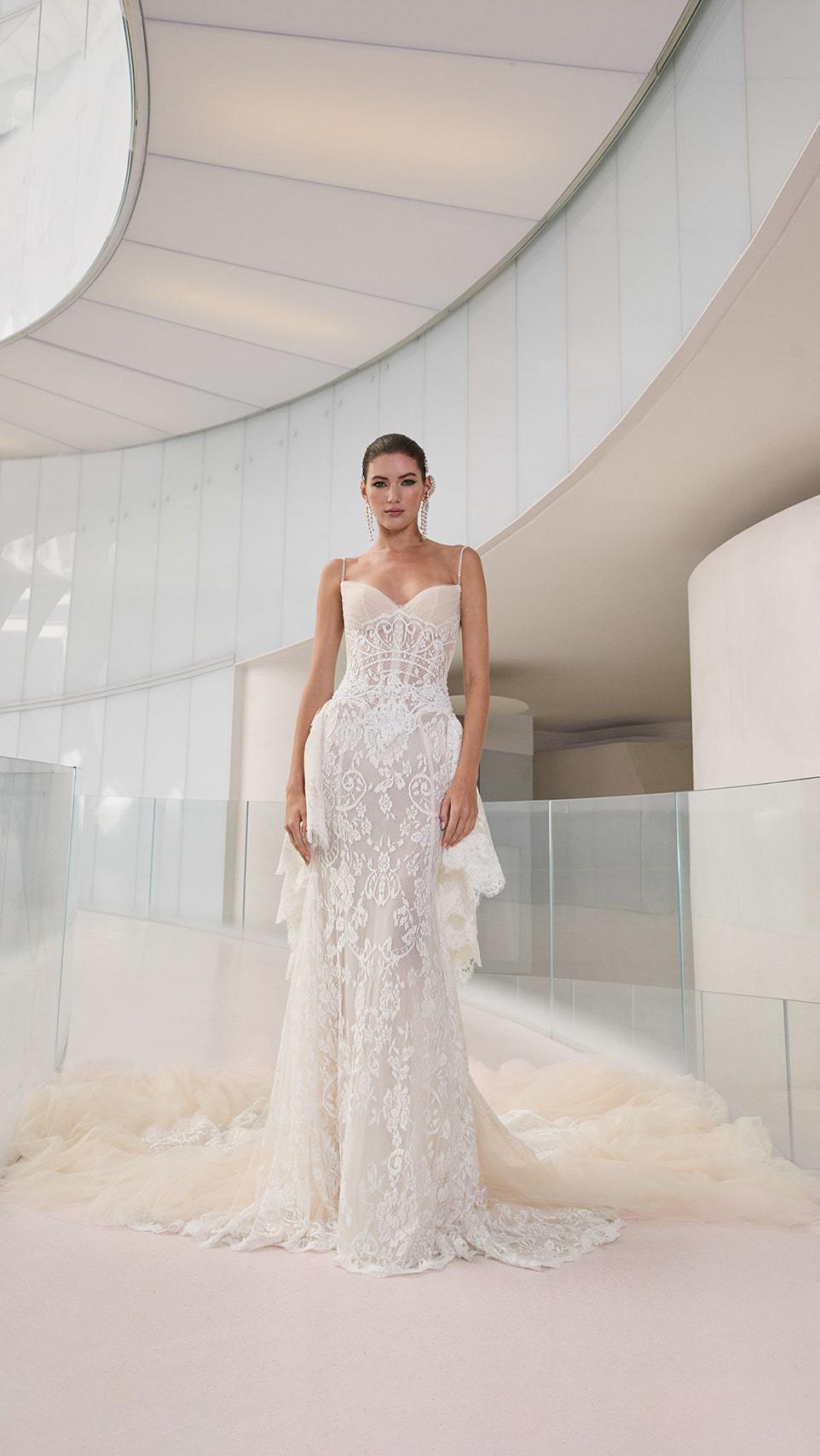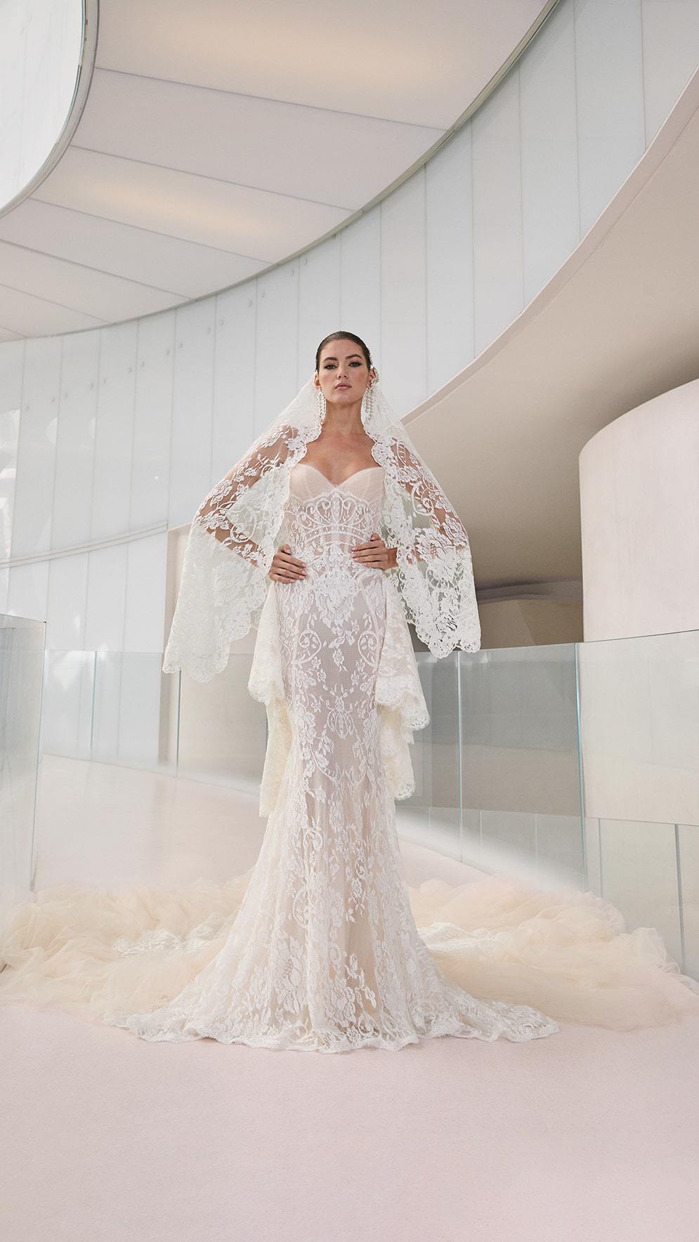 Noblesse is een prachtige trouwjurk van Galia Lahav uit de Couture collectie Suivez-Moi. Deze bruidsjurk heeft een koninklijke uitstraling met een lange sleep en een bijpassende sluier, perfect voor een groots entree. Beschikbaar tijdens de trunkshow.
