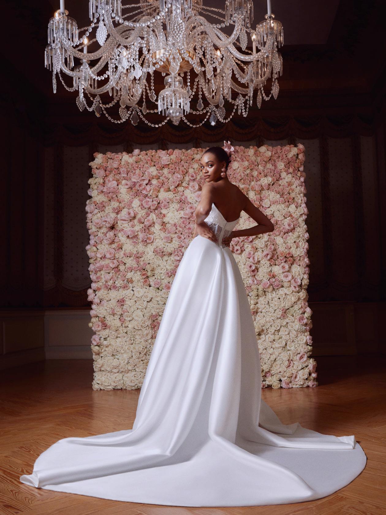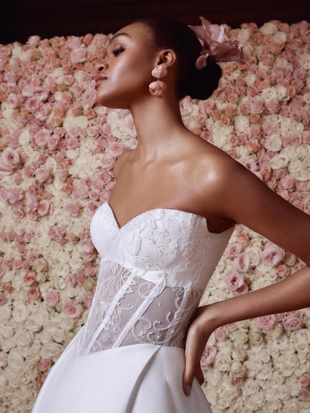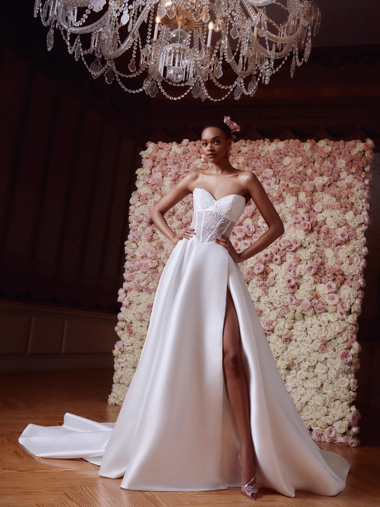 De YoYo van Galia lahav combineert klassiek en minimalisme met een vleugje sexy en een chique rug. Deze exclusieve trouwjurk heeft een sexy split, zijden mikado rok en een kanten see through lijfje. Available during trunkshow