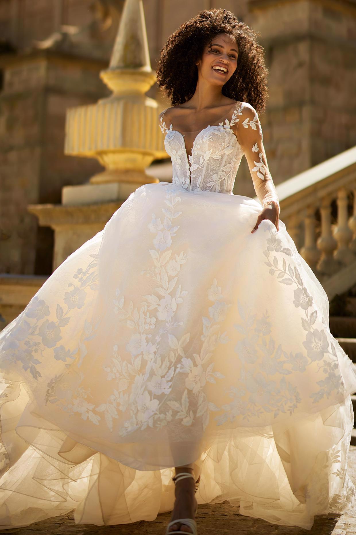 De Forte is een romantische trouwjurk van het exclusieve merk Ines Di Santo. Deze princess look is gemaakt van verschillende lagen kant wat een prachtige dynamiek in de jurk geeft. Daarnaast is de rok gemaakt in een blush kleur, waardoor de kanten applicaties er nóg meer uitspringen. De jurk is een prachtig geheel doordat het kant doorloopt over de mouwen en er een prachtige kanten rand in de rok is gemaakt. Deze jurk geeft een romantische, lieve uitstraling, terwijl de lage rug en het diepe decolleté ook een tintje sexy toevoegen. Bruidshuis Diana is de enige die Ines Di Santo kan leveren in de Benelux, Duitsland, heel Scandinavië en de Oostbloklanden.