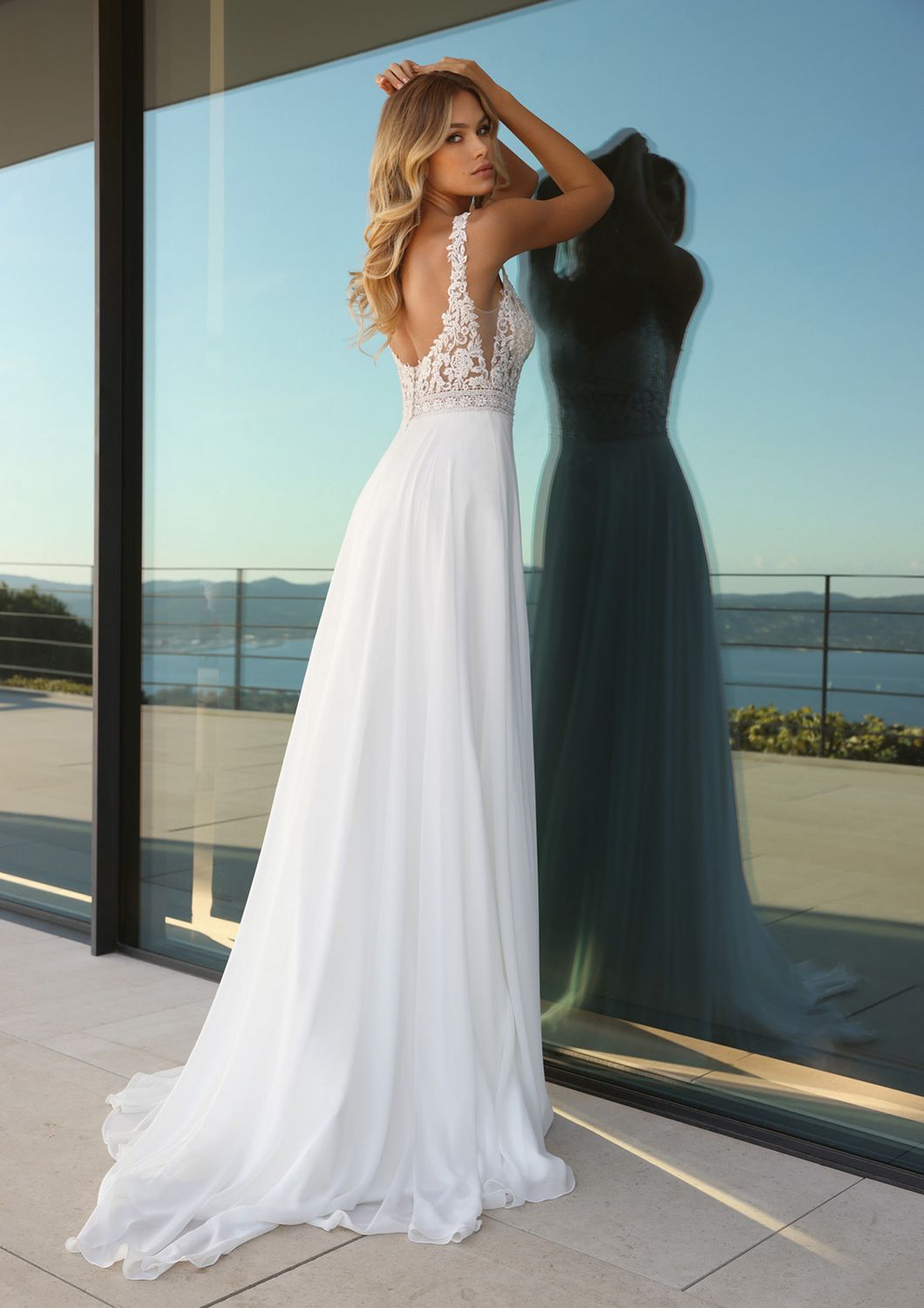 Ben je op zoek naar een trouwjurk met een bohemian uitstraling? Dan is de Nicolette van het merk Ladybird misschien wel jouw jurk! De zwierige rok van lichte chiffon matcht perfect met de vintage look bovenlijfje voor de bohemian uitstraling. Je taille wordt geaccentueerd door het bandje van kant in je middel. Deze jurk heeft een hele subtiele sweetheart neckline, kanten schouderbandjes en een open rug.
