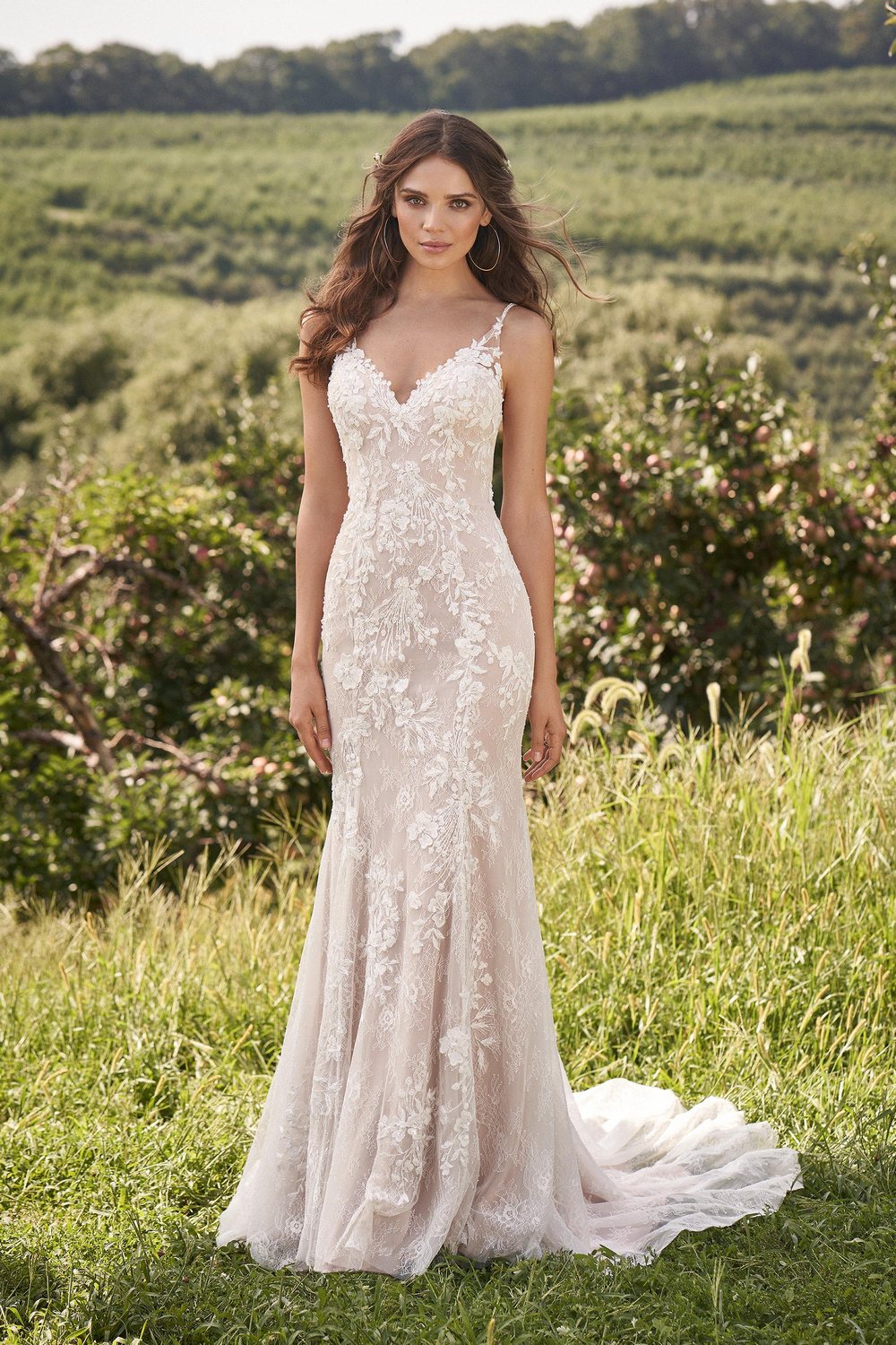 Een elegante trouwjurk van het merk Lillian West. Deze Fit & Flare trouwjurk is van boven to onder aan de sleep bedekt met verschillende soorten kant, waardoor je een schitterend 3D effect krijgt. De smalle spaghetti bandjes zijn afgewerkt met subtiele steentjes. Aan de voor en aan de achterkant heeft de trouwjurk een diepe V-hals, die benadrukt wordt door de see through uitsnijdingen. Een trouwjurk om de hele dag naar te kijken en steeds weer nieuwe bijzondere details te ontdekken.