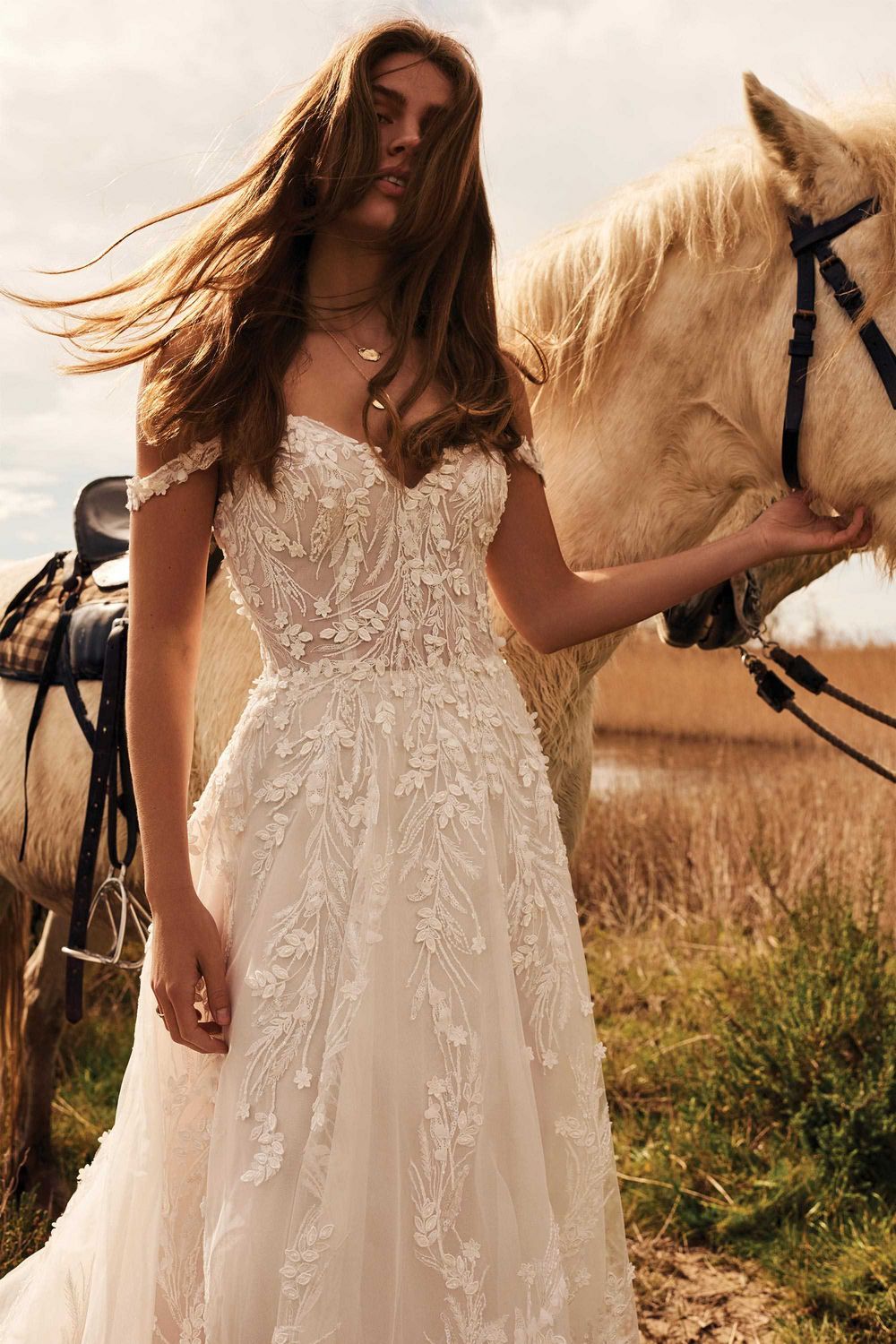 Maak kennis met de schitterende jurk van Lillian West. Deze prachtige jurk heeft een romantische silhouet, gedetailleerd driedimensionaal kant en een illusie halslijn. Je zult je als een echte prinses voelen in deze adembenemende jurk! De achterkant van de jurk is net zo mooi met zijn diepe V-halslijn. Of je nu op zoek bent naar een tijdloze, romantische look of iets unieks, de romantische jurk heeft het allemaal. De elegante lijnen en luxe stof zorgen ervoor dat je de ster van je trouwdag bent! Laat Bruidshuis Diana je helpen bij het creëren van de perfecte look.