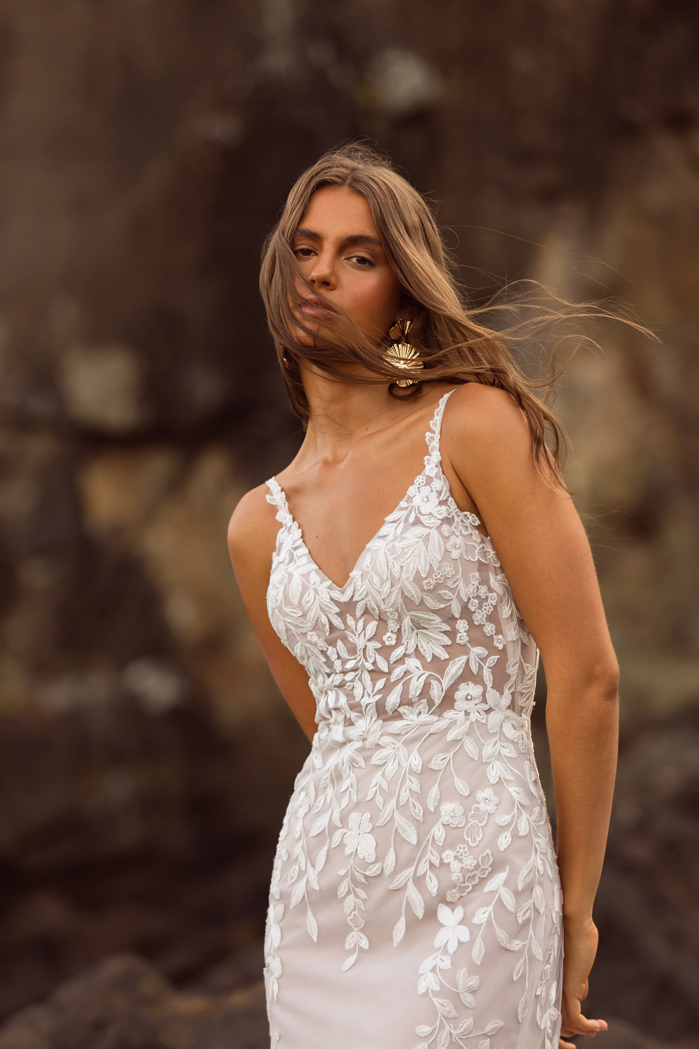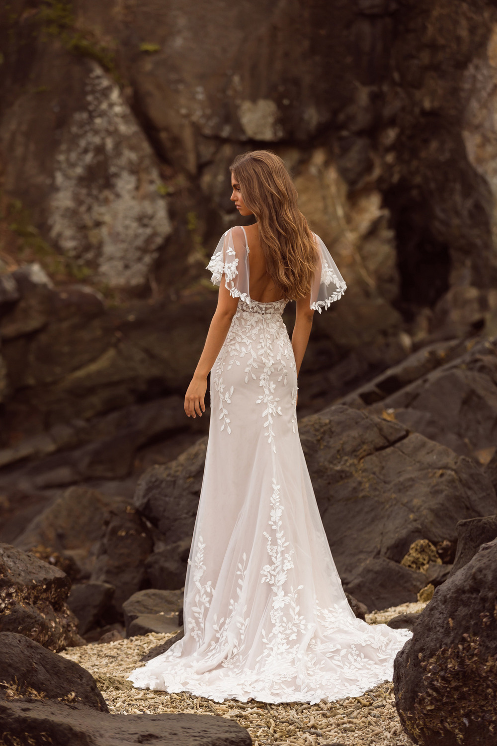 Super vrouwelijk en flatterend! De wijde mouwtjes zijn versierd met prachtig gedetailleerd kant dat doorloopt in het lijfje en de rok. Op deze manier komt jouw figuur schitterend uit. De v-hals geeft een romantisch effect. Deze trouwjurk heeft een bijpassende sluier.