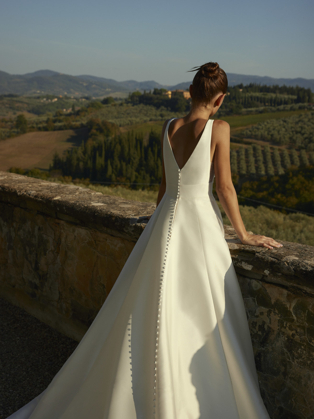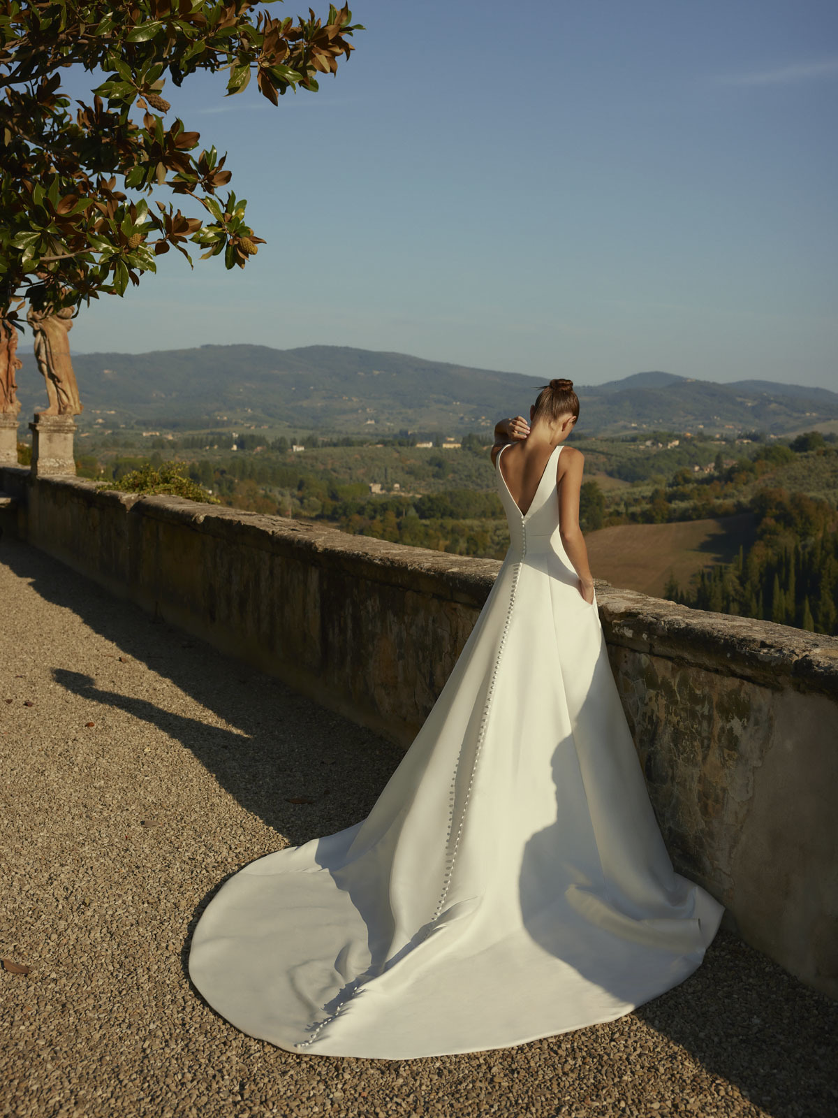 Voel je als royalty in de prachtige Deejay baljurk. De prachtige V-hals is versierd met delicate parels en een ceintuur in de taille om je vorm te definiëren. Deze mikado schoonheid is voorzien van zakken en afgewerkt met een sleep.