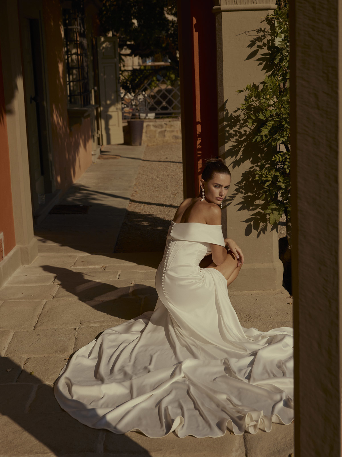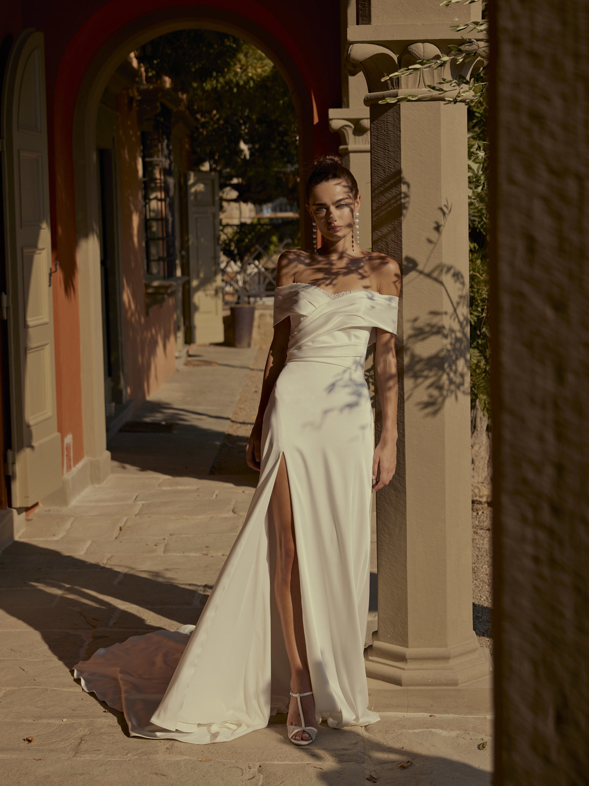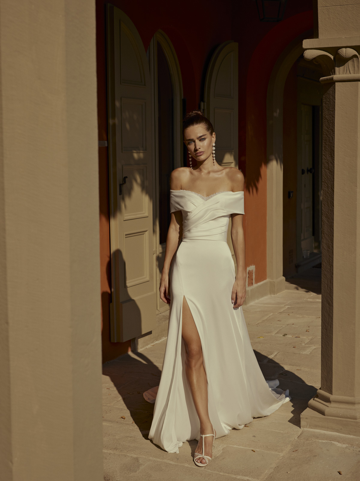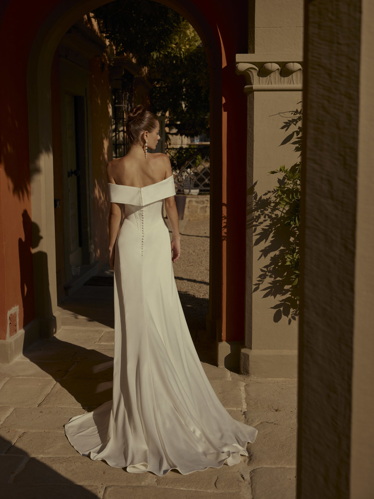 Donau is een visie van moderne elegantie en verfijning. Het pronkstuk van dit ontwerp is de brede 'off-the-shoulder' halslijn versierd met parels voor een vleugje tijdloze glamour. Donau is de perfecte keuze voor de bruid die op zoek is naar een mix van klassieke charme en eigentijdse flair.