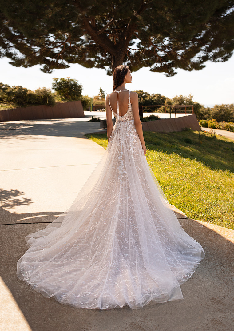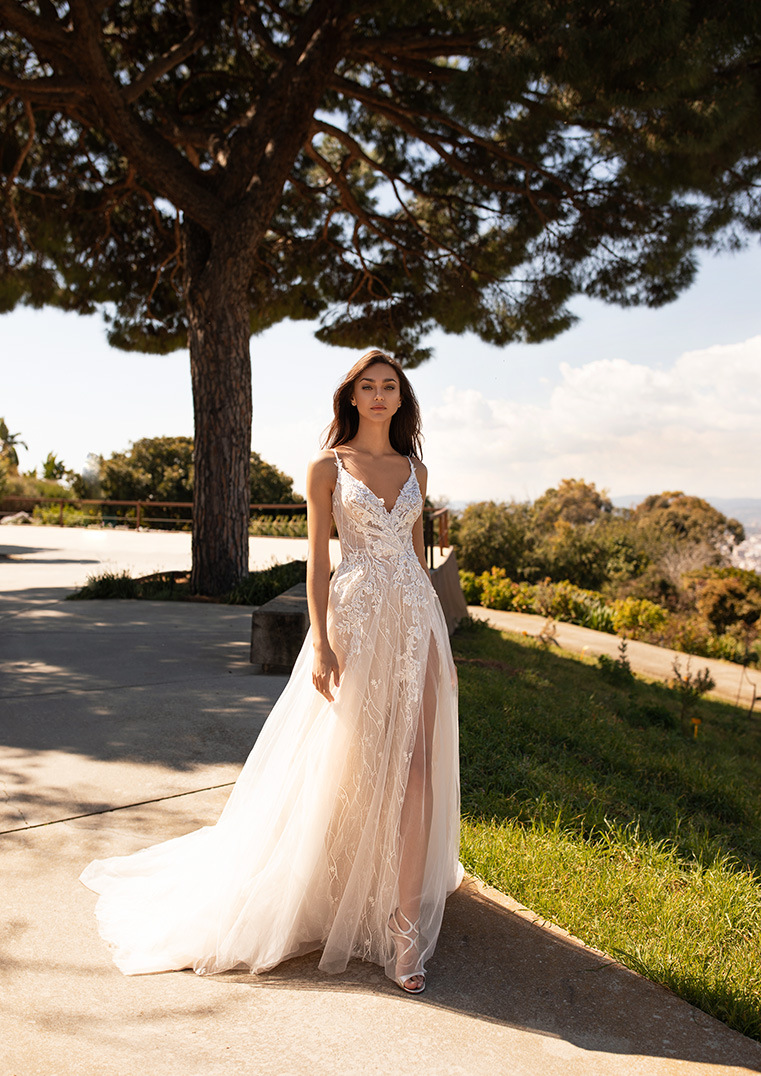 De Hyperion van Pronovias is zeker een topper uit de collectie! Stijlvol, uniek, romantisch, bohemian, noem maar op... Deze blush jurk heeft bloemen applicaties, een speciaal 3D effect in de rok en tot slot een loopsplit in de rok. Do we need to say more?!