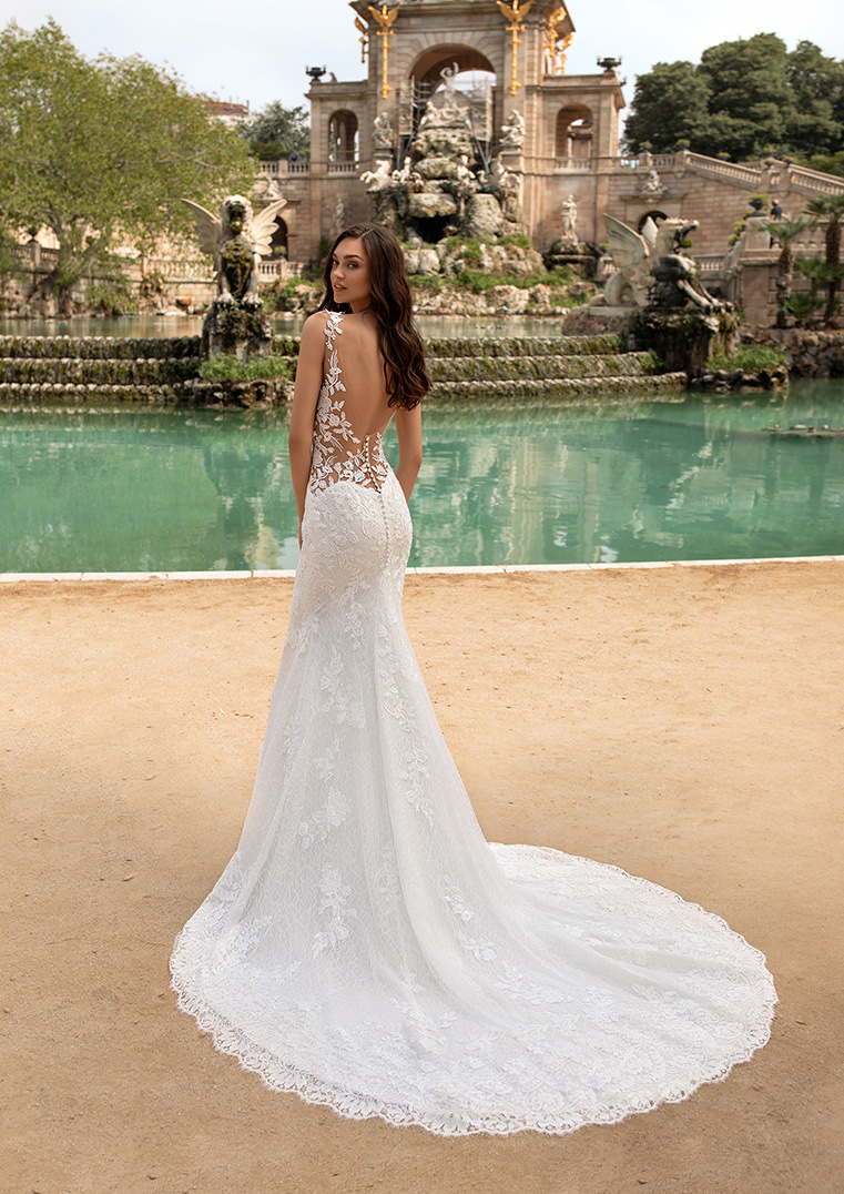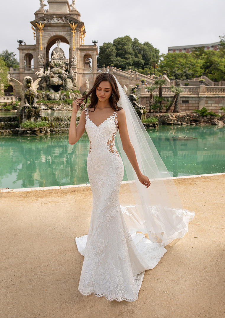 De Morocco van Pronovias is een uitdagende jurk. Het aansluitend silhouet siert al jouw vrouwelijke vormen. Het lijfje is in de taille uitgesneden en heeft een illusion top met kanten applicaties. Deze all-over kanten trouwjurk, is stijlvol en sexy.