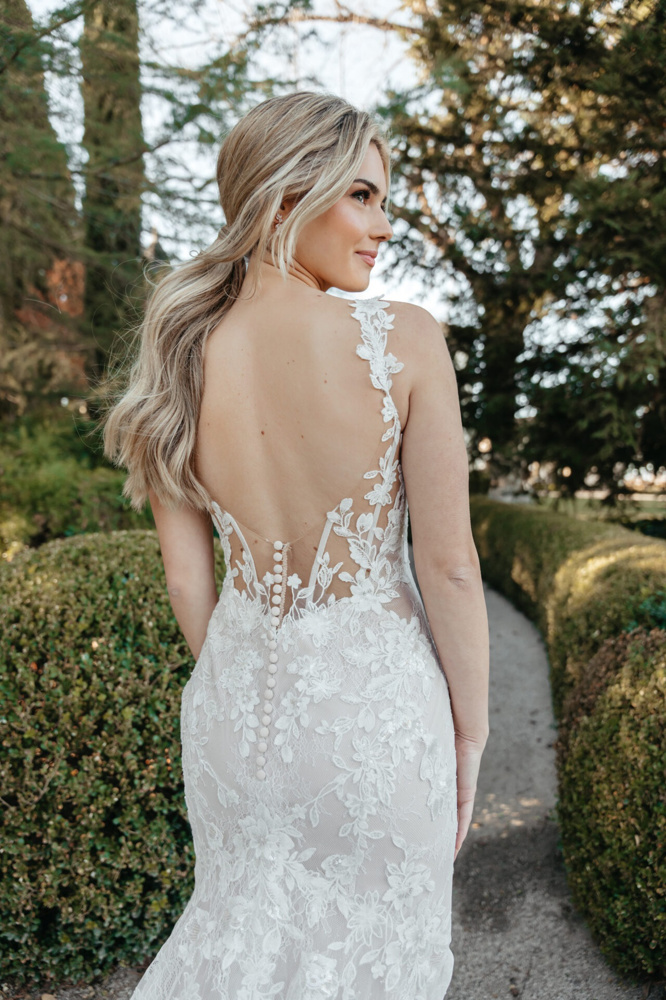 De betoverende Stijl 7941 heeft met haar vierkante halslijn en see through body een extravagante look. De fit-en-flare trouwjurk heeft romantische kanten spaghettibandjes. De met de hand gemaakte kanten applicaties lopen over de glinsterende fit-en-flare trouwjurk, met een optionele split voor extra charme. Uitlopend in een prachtige gevormde sleep, maakt deze fit-en-flare trouwjurk een glamoureuze statement op die speciale dag. Deze jurk is verkrijgbaar met of zonder een glitter tule rok.