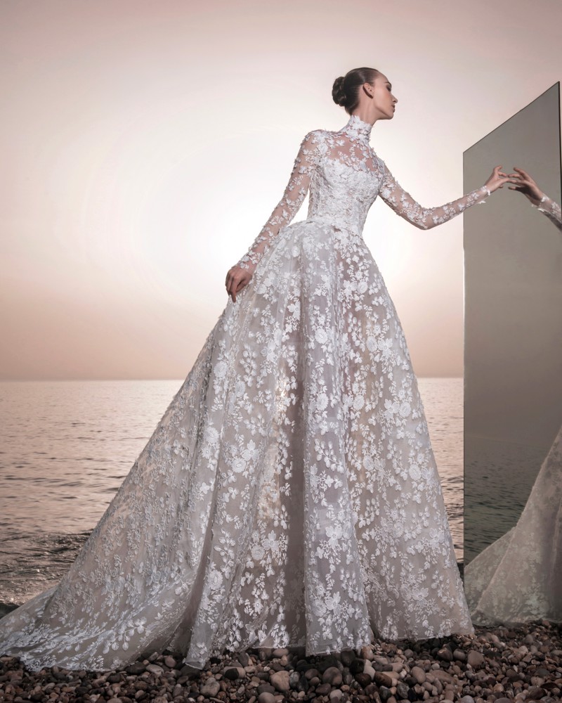 De zeer exclusieve, Libanese designer Zuhair Murad staat bekend om zijn extravagante designs en de mogelijkheden om met één jurk verschillende looks te creëren. De Jade is een romantische trouwjurk in een princess model. De jurk is volledig bedekt met prachtig kant. De rok is licht see-through wat de jurk veel diepte geeft. De strapless halslijn is hier bedekt met een bolero van mouwen en een prachtig kolletje. Wanneer je de bolero af doet, heeft de jurk een strapless halslijn. Een prachtige designerjurk voor de bruid die voor een romantische prinsessen-look wilt gaan.